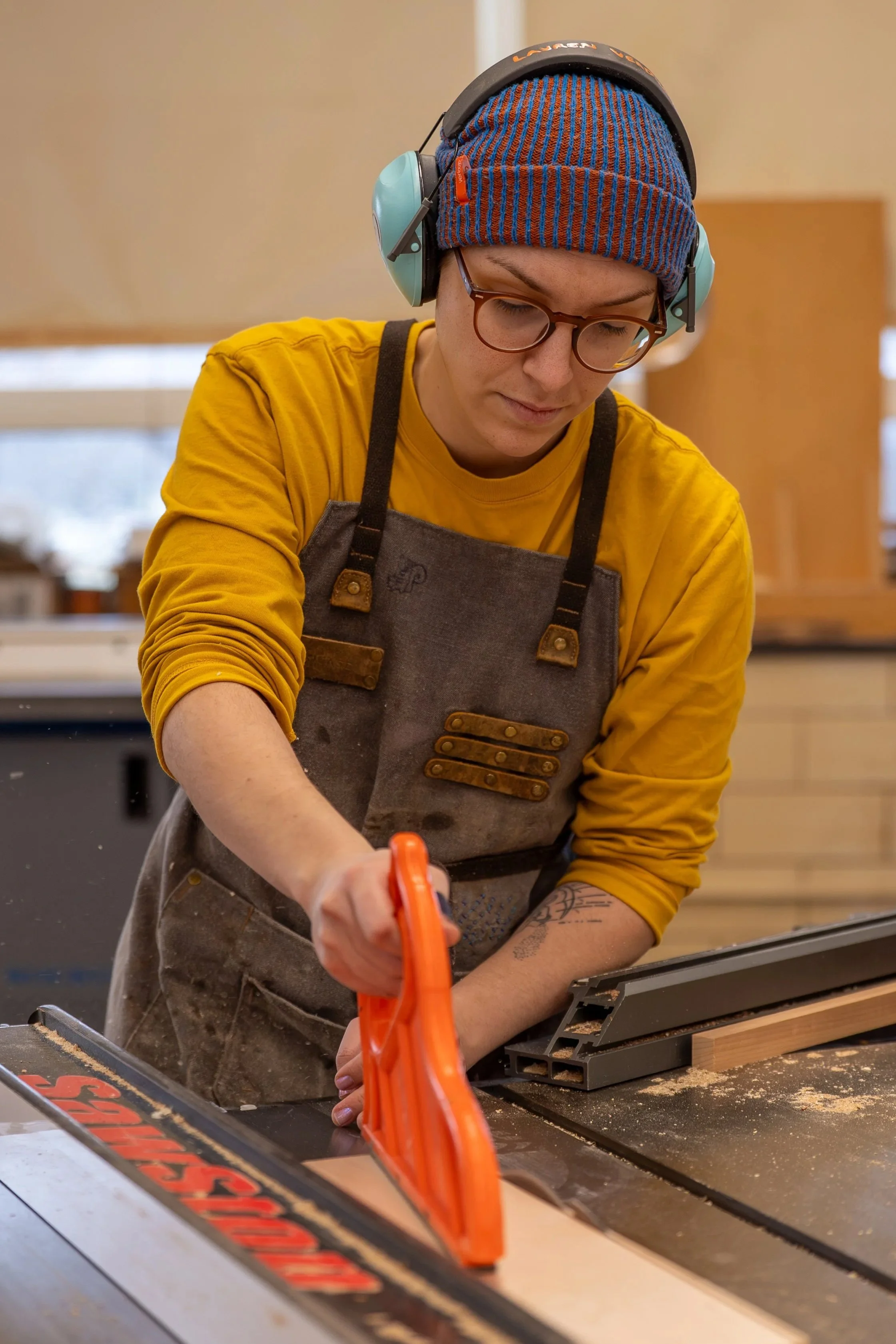 Lauren Verdugo is an artist and furniture maker from Southern California. They make functional objects out of locally sourced materials, found objects, and production waste. Lauren has a BA in Applied Design with an emphasis in Furniture Design and Woodworking from San Diego State University. They are currently in the MFA degree program at California State University Long Beach, studying Studio Art with an emphasis in Woodworking. Lauren has taught woodworking at Allied Woodshop in Los Angeles, CA, and The Maloof Foundation in Alta Loma, CA. They recently moved from California to Pennsylvania to lead the woodworking program at George School in Newtown, PA.